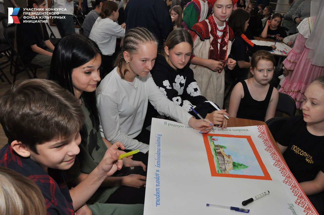 Сегодня опробована креативная форма организации совместной работы по теме проекта «Форум-театр «Межнациональный диалог». Проект направлен на сохранение культурного и национального кода народов Сурского края и помогает детям осознать богатство и разнообразие культурного наследия, формировать чувство гордости за свои корни, а также научиться уважать и ценить культуру других народов. Руководителем проекта Федотовой Натальей Александровной проведен Квилт «Многоязычный диалог».
