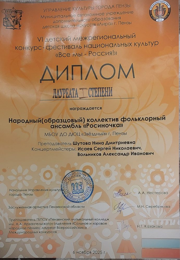 6 ноября в Центре хорового и вокального искусства г. Пензы прошёл VI Межрегиональный конкурс-фестиваль национальных культур «Все мы – Россия» приуроченный ко Дню народного единства.
