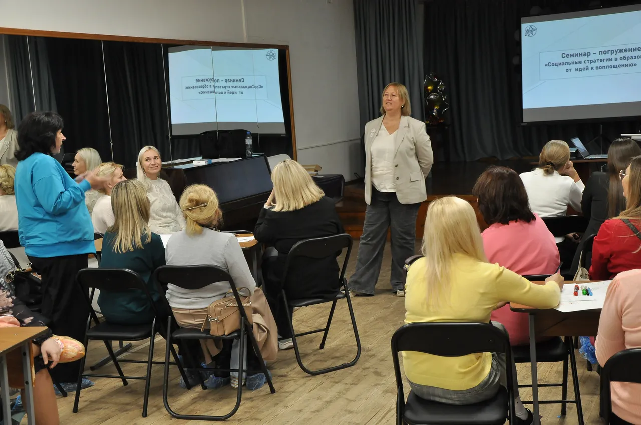 Тема первого занятия «Социальные стратегии в образовании: от идей к воплощению». Это интерактивная лекция с использованием практических упражнений и технологии «Качели времени». Участникам были предложены современные подходы и методы воспитания ответственности у детей и подростков через проектную деятельность. Педагоги нашего учреждения представили различные современные стратегии образования, так Оленина Наталья Владимировна — педагог дополнительного образования детского объединения «Акварель» выступила с темой «Стратегия А. Эйнштейна – визуализация, формирование образов и зрительных конструкций, как источника «продуктивного интеллекта», Турукина Елена Леонидовна – педагог дополнительного образования образцового детского коллектива театра кукол «Тутти-Фрутти» раскрыла тему «Стратегия согласования интересов и гармонизации межличностных отношений участников образовательного процесса» и представила детский спектакль, подготовленный разновозрастной группой детей.