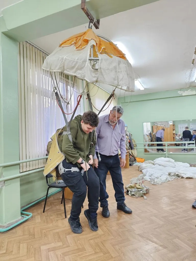 На практике учащиеся попробовали складывать парашют в ранец, а также научились креплению запасного парашюта. Увидели настоящую подвесную систему, научились равномерному распределению динамической нагрузки на тело в момент раскрытия парашюта.