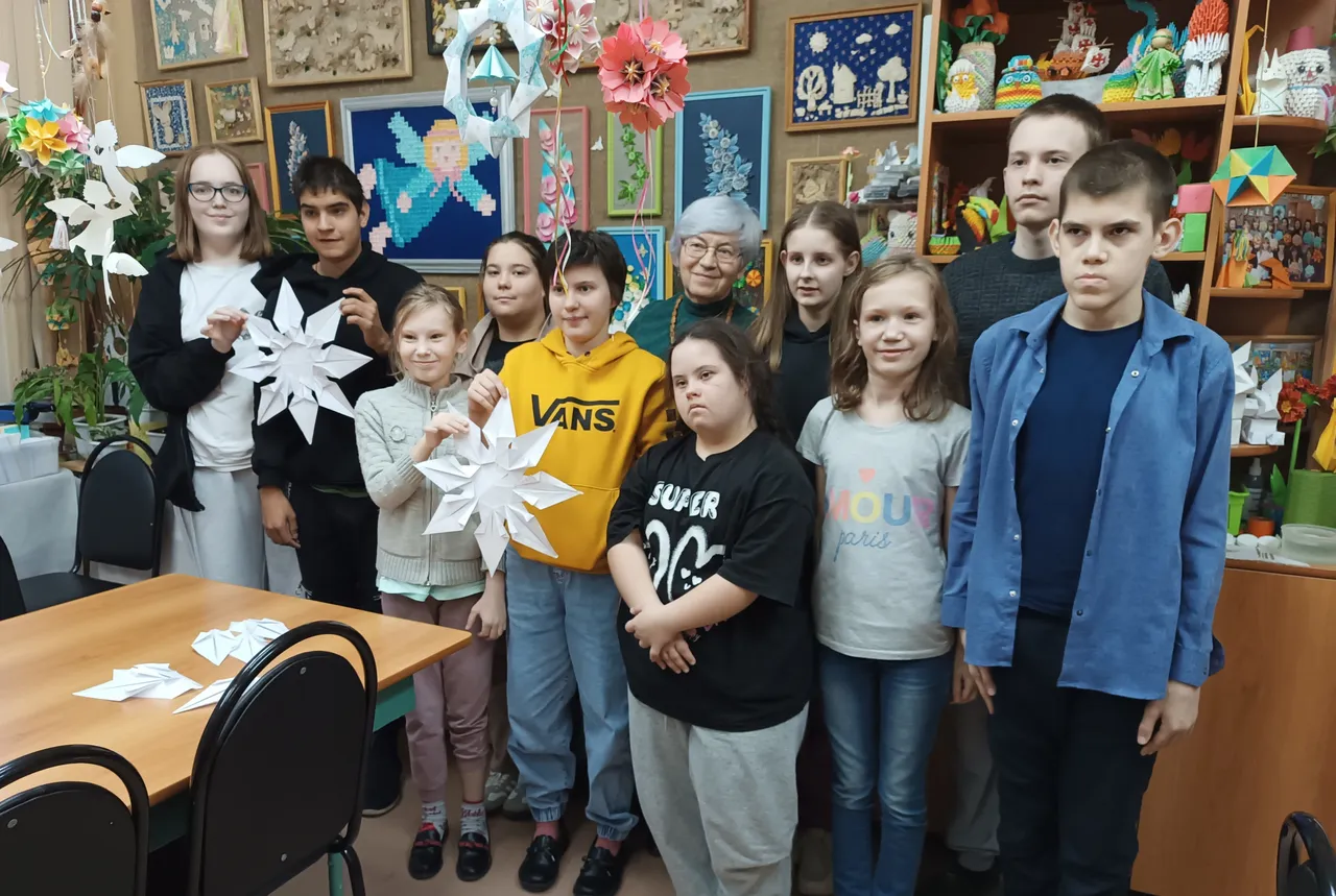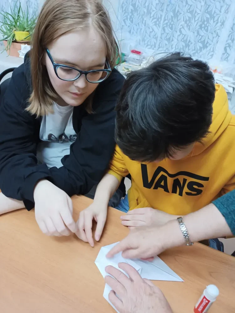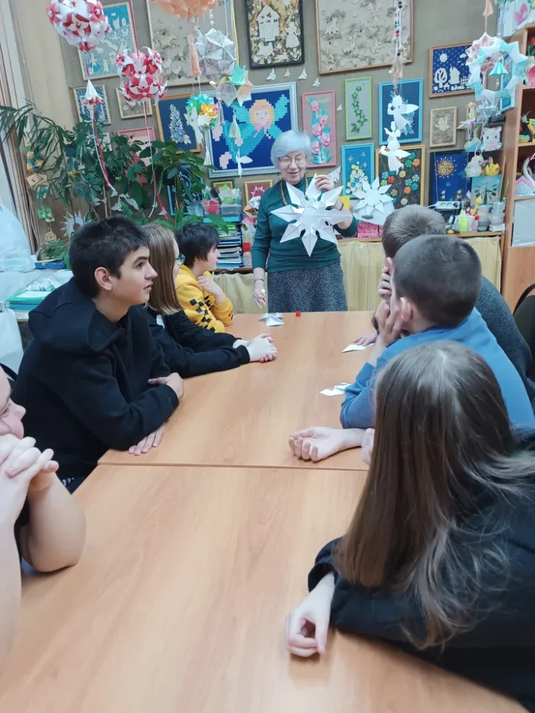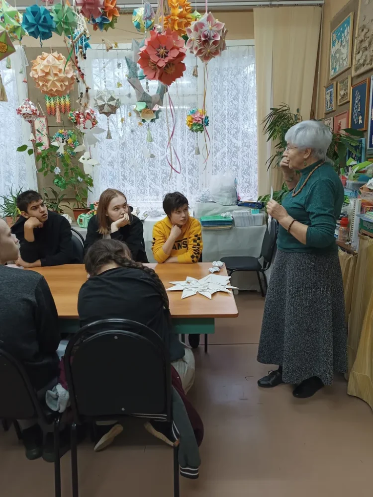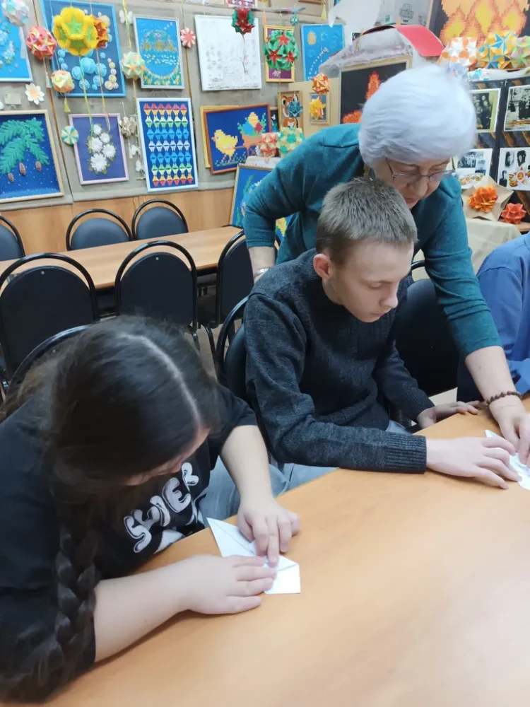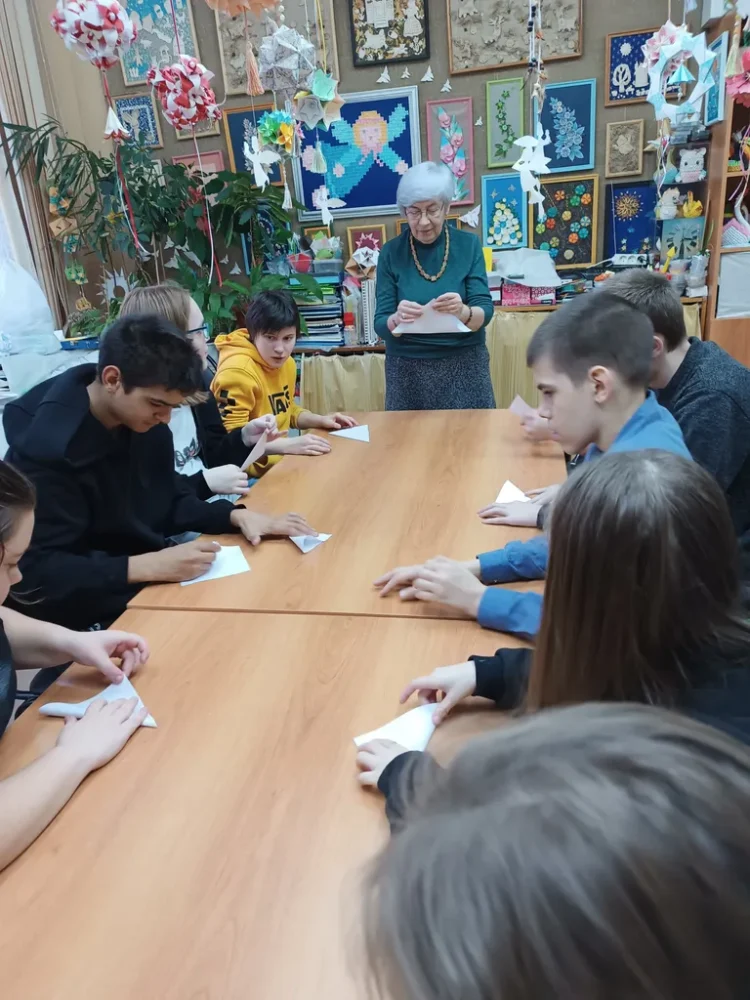На практике каждый складывал модули снежинки, а затем все соединили в целое изделие. Ребята как всегда активно помогали друг другу. Полученный опыт поможет им в оформлении своего класса.