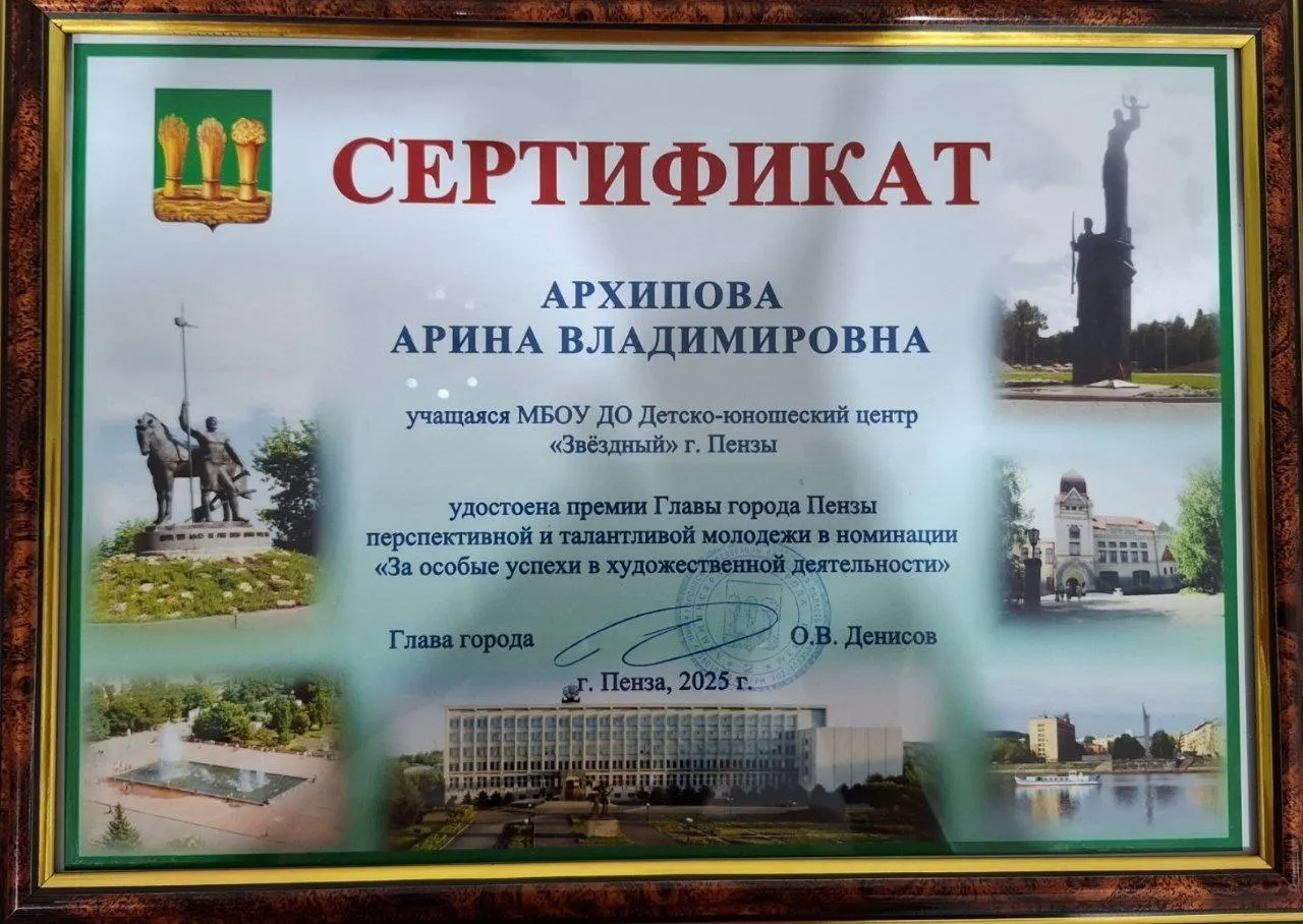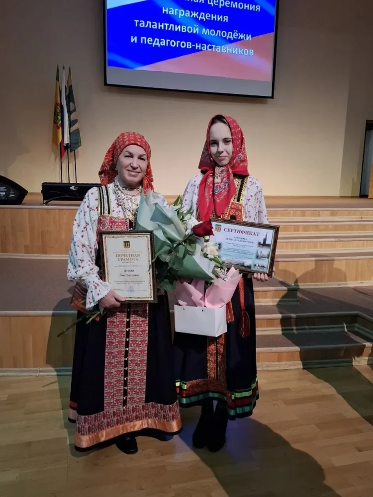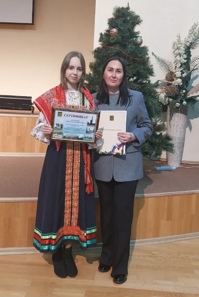 Поздравляем Арину Архипову, учащуюся Народного (образцового) коллектива фольклорного ансамбля “Росиночка” с победой и заслуженной наградой. Арине вручен сертификат и премия за высокие результаты в номинации “За особые успехи в художественной деятельности”. В данном конкурсе было подано 90 заявлений.