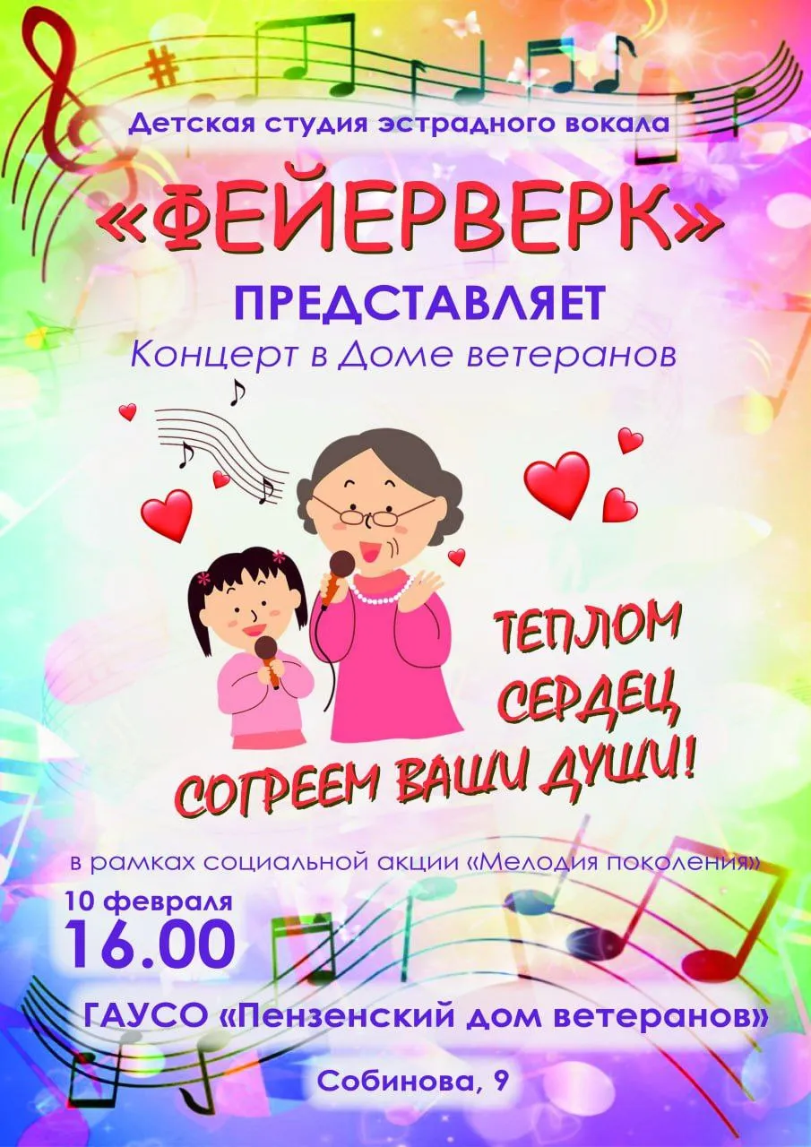 10 февраля в Пензенском доме-интернате для престарелых и инвалидов случилось настоящее чудо. В гости к бабушкам и дедушкам приехали ребята из творческого коллектива «Фейерверк». И название оказалось символичным: детские улыбки и звонкие голоса действительно вспыхнули яркими огоньками в глазах зрителей.