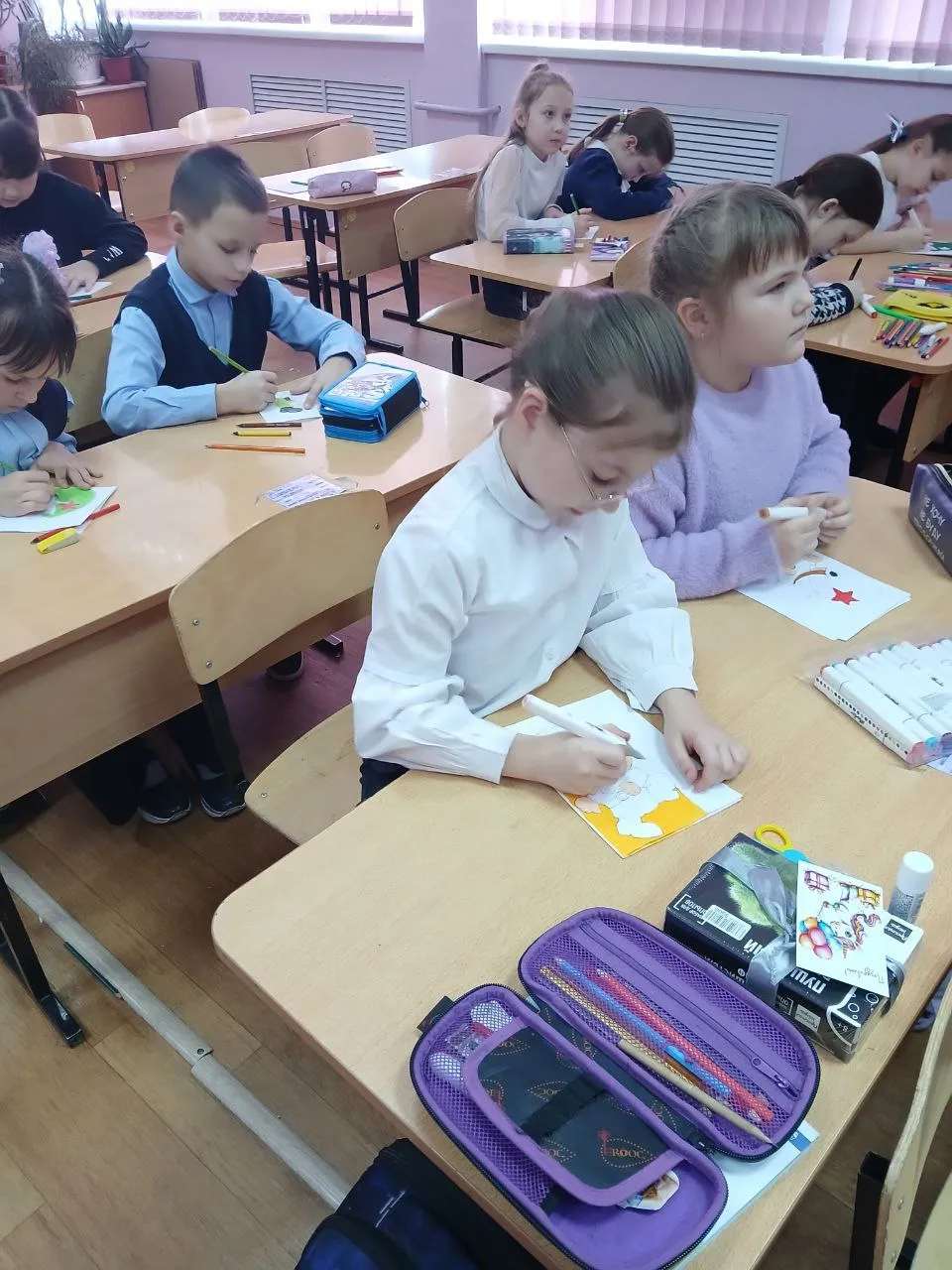 На занятии объединения «Мастерская дизайна» под руководством педагога дополнительного образования Елены Викторовны Чернышовой. Учащиеся активно включились в процесс изготовления оригинальных поздравительных открыток, посвящённых 23 февраля – «Дню защитника Отечества». Под чутким руководством преподавателя дети проявили фантазию и творческие способности, создавая уникальные открытки своими руками. Занятие позволило ребятам выразить уважение и благодарность защитникам Родины, продемонстрировав важность праздничных традиций и внимания к истории своей страны.