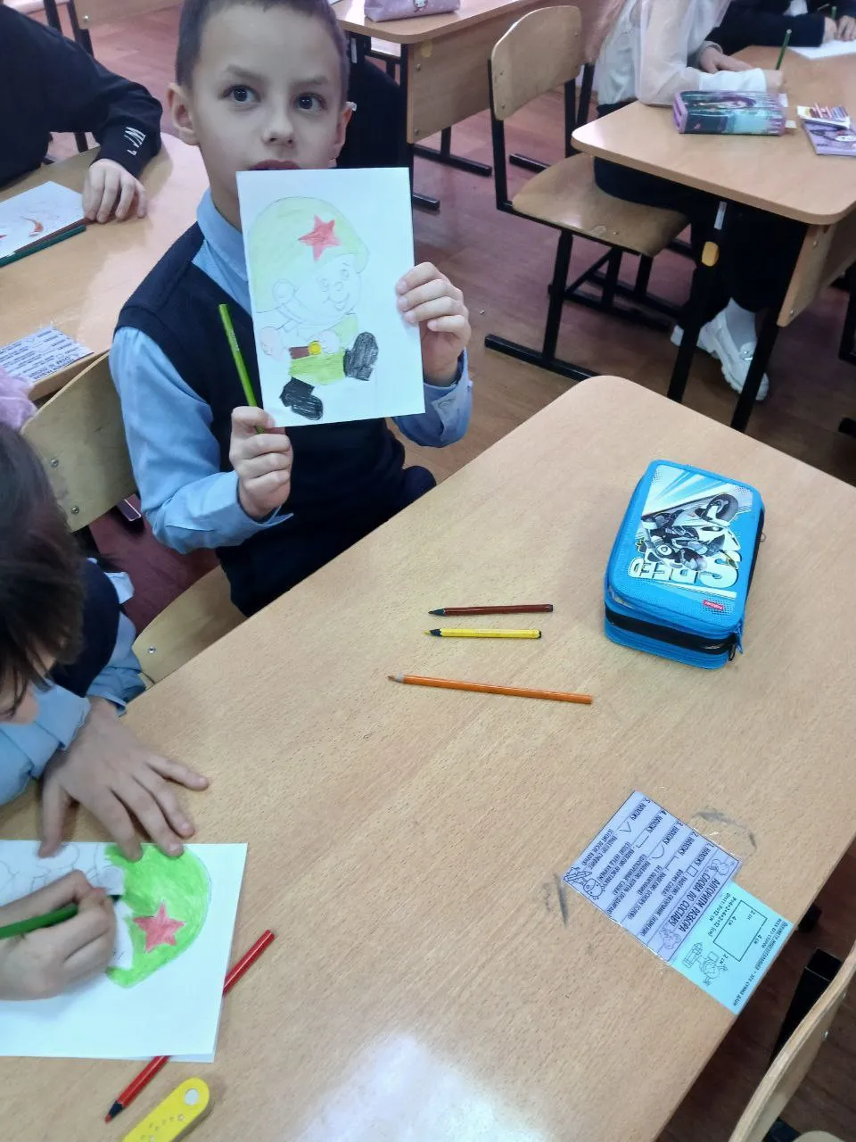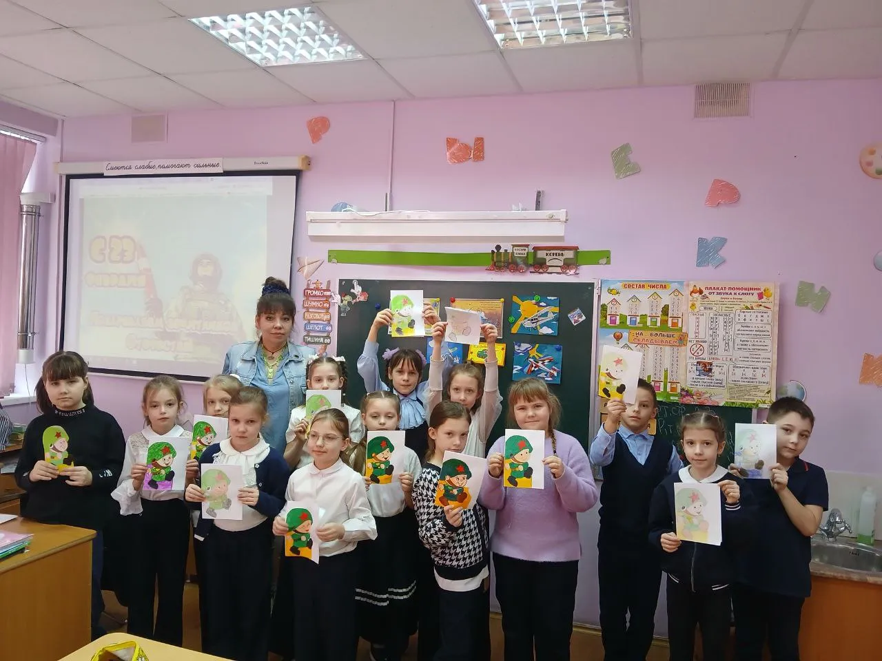 Особое внимание было уделено воспитанию уважения к старшим поколениям, чьи усилия обеспечили свободу и независимость нашего государства. Учащиеся сделали своими руками поздравительные открытки посвященные 23 февраля