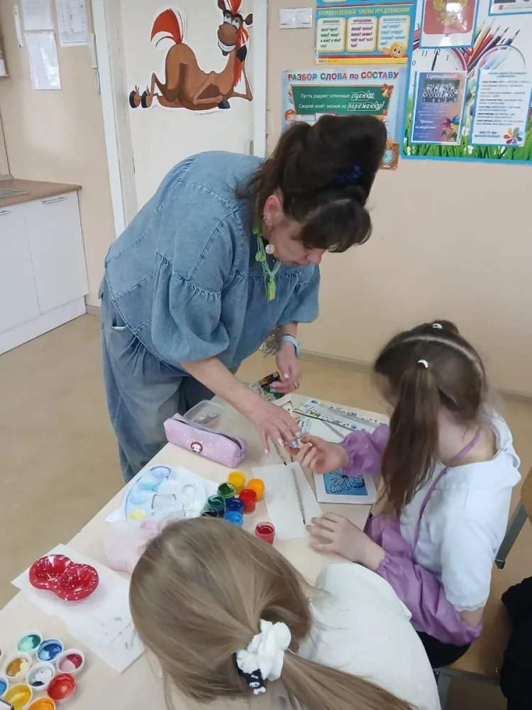 Дети увлеченно трудились над своими шедеврами, искренне радуясь каждому новому элементу. Атмосфера была наполнена радостью и вдохновением, а финалом занятия стало торжественное вручение открыток любимым мамочкам, сопровождаемое аплодисментами и восторгом.