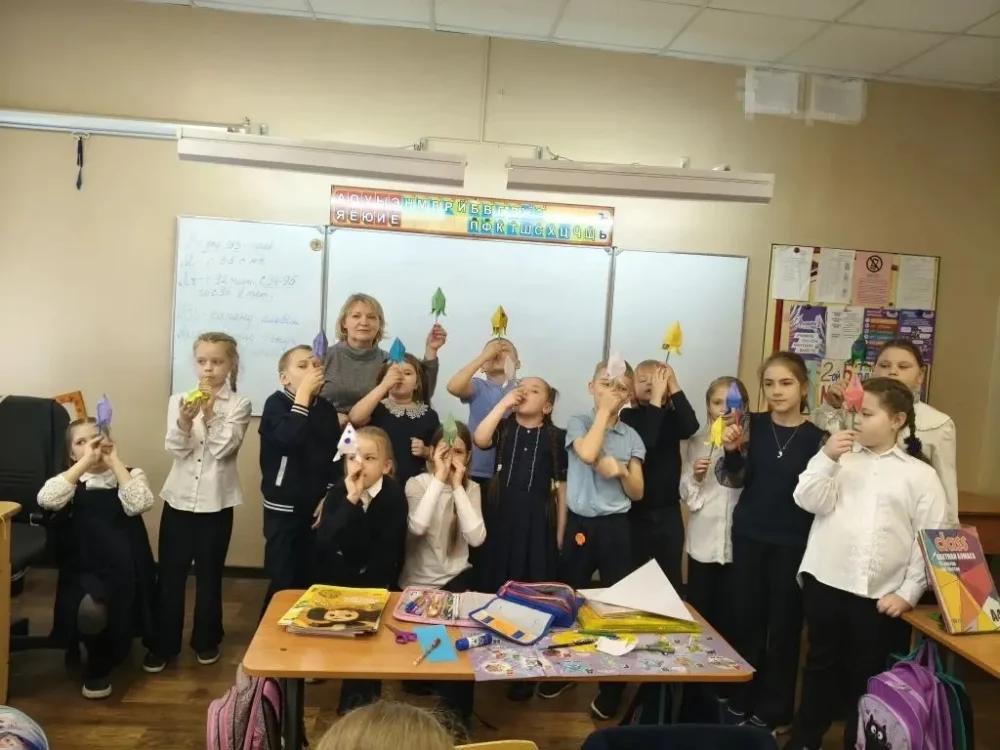 Продолжением встречи стал увлекательный мастер-класс по оригами. Каждый участник создал собственную ракету из цветной бумаги, проявив аккуратность и творческий подход. Ракеты получились яркими, необычными, и у каждой появилось своё имя — как у настоящего космического корабля. Завершился праздник весёлым «запуском» бумажных ракет и небольшой космической фотосессией, которая подарила всем много улыбок и радостных эмоций.